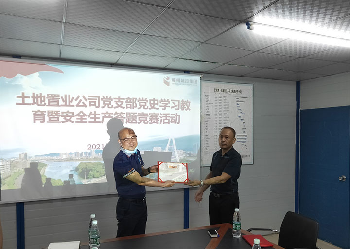 為進(jìn)一步鞏固深化黨史學(xué)習(xí)教育成果,促進(jìn)建黨100周年期間的安全生產(chǎn)工作,日前,土地置業(yè)公司黨支部在星洲灣·九境項(xiàng)目部會(huì)議室舉辦建黨100周年黨史學(xué)習(xí)教育暨安全生產(chǎn)答題競(jìng)賽,土地置業(yè)公司全體員工,星州潤(rùn)達(dá)集團(tuán)、贛州建工集團(tuán)、星洲地產(chǎn)部分代表等20余人參加。